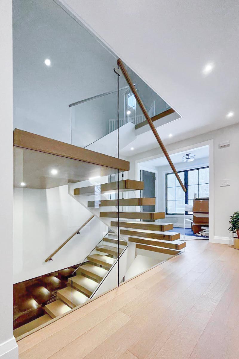 If a client wants to install the glass guard themselves, Mrail can provide an offer for the necessary hardware, standoff receiving sockets in steps, glass drawings and glass panels.