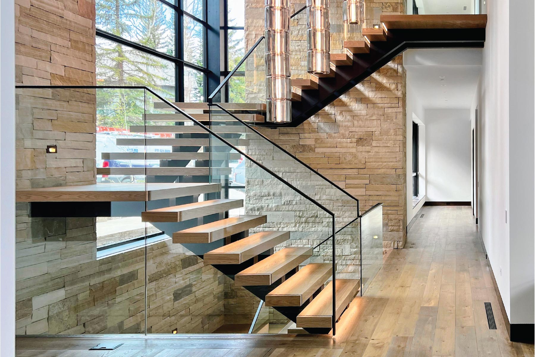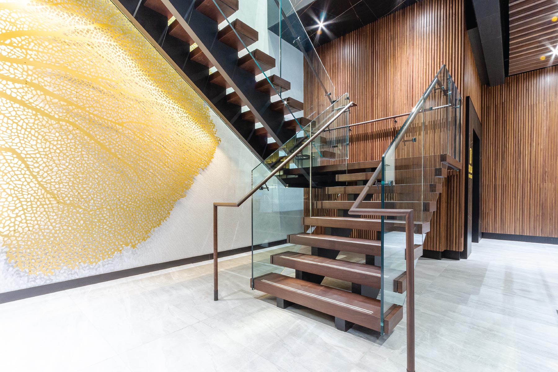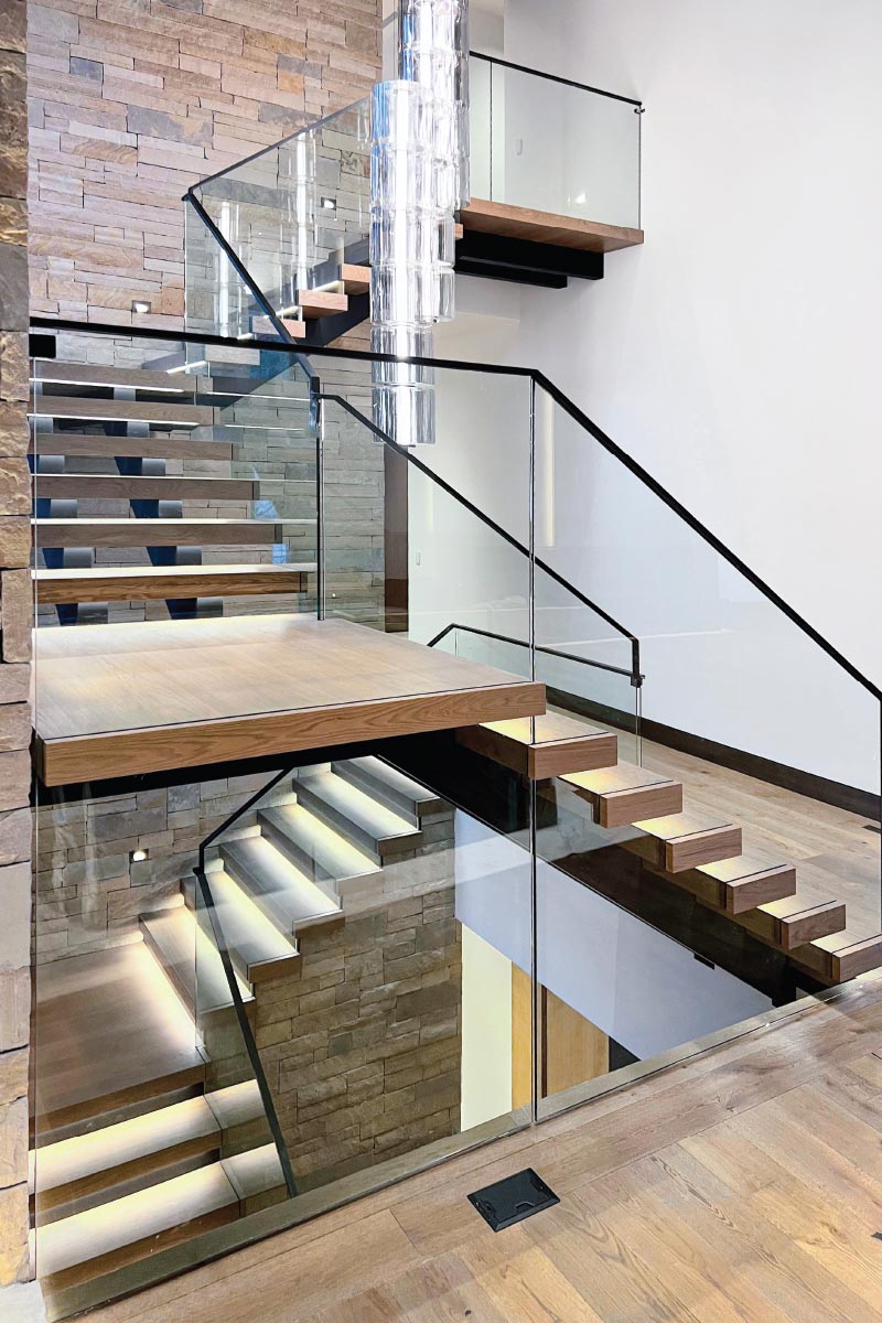 To improve stability, very wide staircases can be designed with double mono stringers.