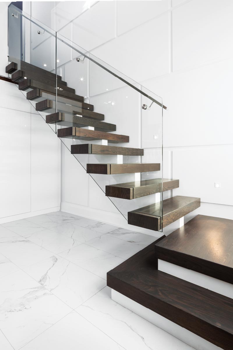 If a client wants to install the glass guard themselves, Mrail can provide an offer for the necessary hardware, standoff receiving sockets in steps, glass drawings and glass panels.