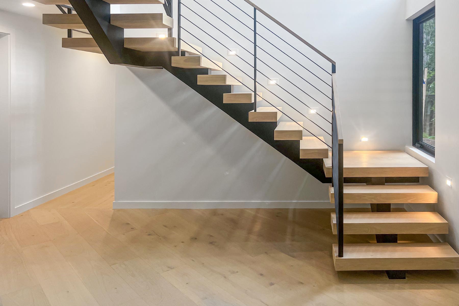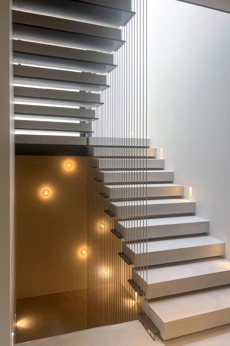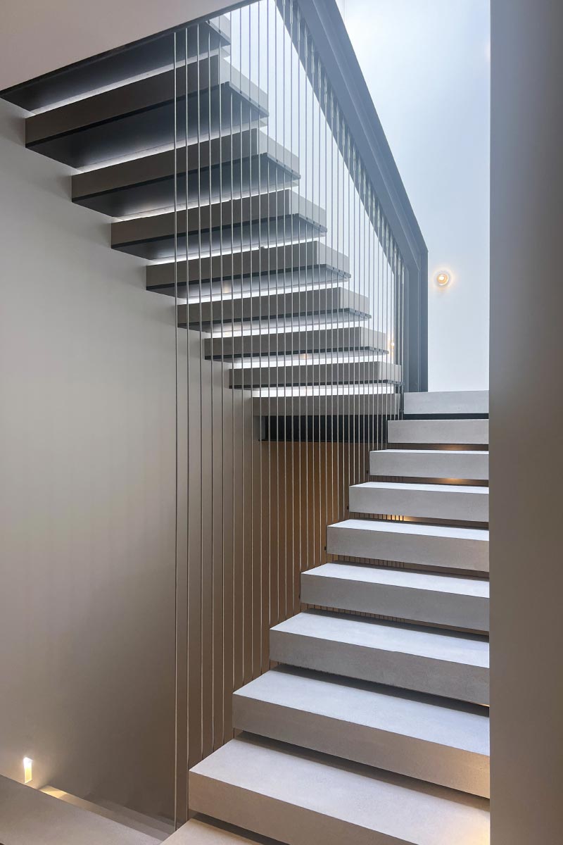 For a more substantial and secure design, solid guards offer both privacy and durability. These guards can be crafted from materials like wood or metal, providing a sleek, modern appearance while maintaining safety. Ideal for areas that require additional privacy or protection, solid guards fully enclose the space without the transparency of glass. They can be tailored to your design preferences through choices in material, color, and texture—offering a versatile and sturdy solution for staircases.