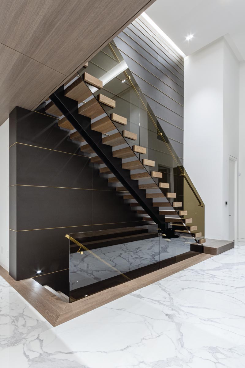 For certain types of stairs, the metal may also be custom-finished in stainless steel, black oxide, wood veneer, or anodized aluminum, offering a variety of aesthetic options.